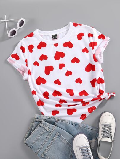 SHEIN Unity 心形印花圆领T恤 女式图案T恤 上衣 - 白色 - 查看 1