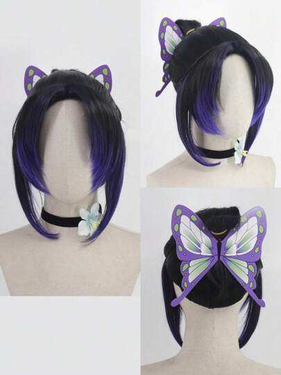 耐熱纖維人造假髮Anime假髮帶蝴蝶夾適用於角色扮演服飾假髮14寸人物角色扮演假髮適合派對萬聖節裝帶假髮帽 - 拼色 - 查看 1