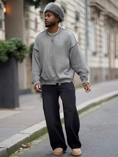 Heavens Edit 1 件装男士宽松破洞牛仔休闲阔腿牛仔裤,韩版/日系风格 - 黑色 - 查看 1