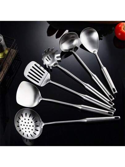 重型 304 不锈钢炊具厨房烹饪用具 - 铲子、勺子、汤勺、厨师专用炒菜勺 - 銀色 - 查看 6