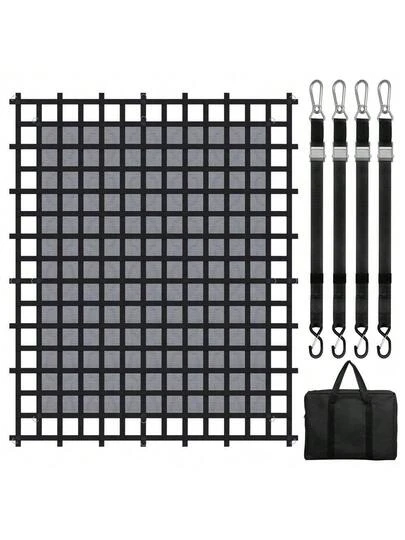 Heavy Duty Cargo Net 120" X 105" With Adjustable Buckles & S-Hooks For Secure And Versatile Load Transport - 黑色 - 查看 1