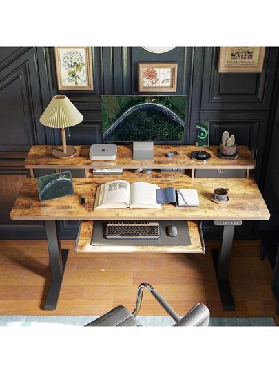 Height Adjustable Electric Standing Desk With Keyboard Tray, 55 X 24 Inch Stand Up Table With Storage Shelf, Sit Stand Desk