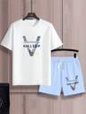 男式夏季宇航员印花做旧水洗圆领短袖T恤,2000年代风格