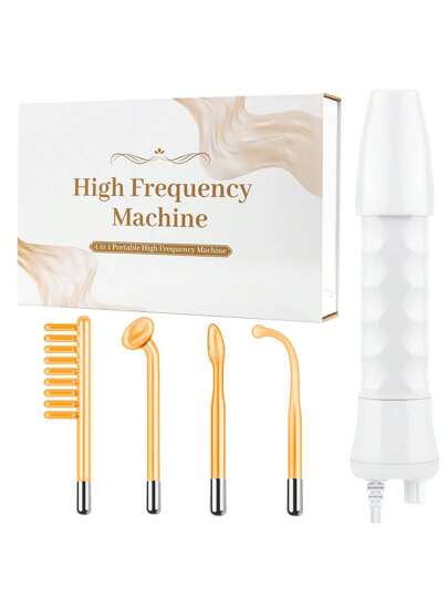 高頻臉部按摩器-便攜式手持高頻臉部皮膚按摩機-臉部按摩器裝置含4種不同玻璃管 - 黃色 - 查看 4