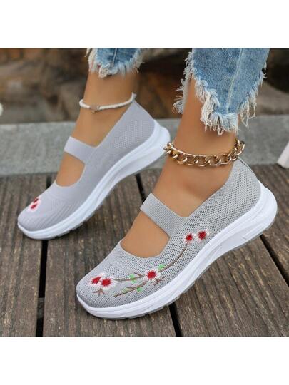 潮流优质平底女鞋老北京布鞋镂空透气防滑耐穿休闲平底乐福鞋适合妈妈 - 灰色 - 查看 1