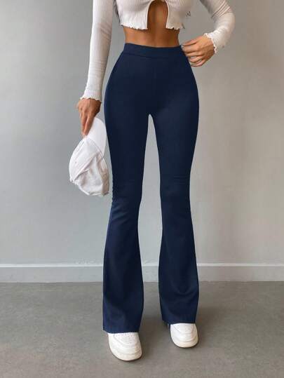 高腰喇叭褲 - 藏蓝色 - 查看 1