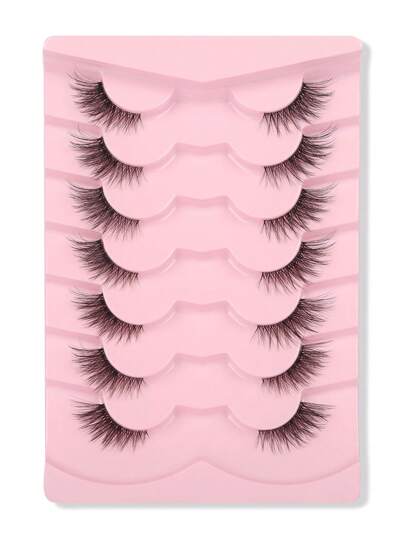 Himirell 7 对/套猫眼风格自然短交叉透明茎假睫毛,日常化妆必备条状睫毛,睫毛,睫毛,假睫毛 - 黑色 - 查看 7