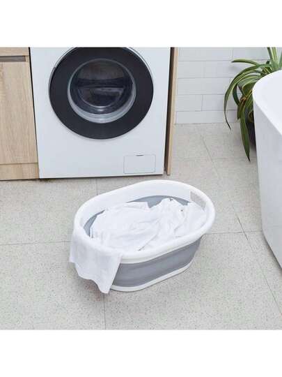 家庭可折疊洗衣籃橢圓造型多功能收納籃,可放置在車或者戶外,21L大容量,便攜雙把手塑膠PP材料衣服籃子通用,浴室籃子 - 灰色 - 查看 1