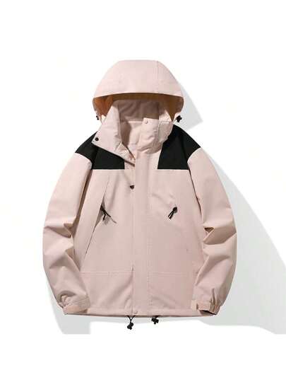 女式戶外透氣防風拼色拼接衝鋒衣(單衝鋒衣) - 粉色 - 查看 1