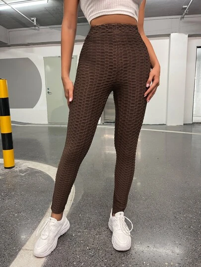 蜂窩紋理緊身打底褲 - 巧克力棕 - 查看 1