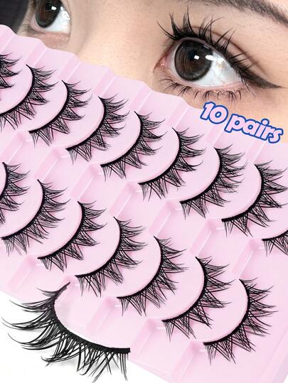 Happy Butterfly 10 对纤细假睫毛,11 毫米蓬松猫眼睫毛,自然外观 3D 貂皮风格条状睫毛,轻盈假睫毛,适合日常妆容 - 黑色 - 查看 10