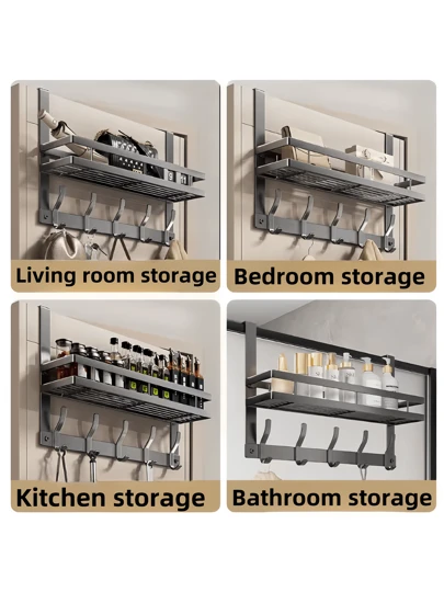 鉤掛儲物架-門背鉤掛毛巾架,門用衣架,適用門厚1.33-1.77英寸,安裝簡單 - 灰色 - 查看 1