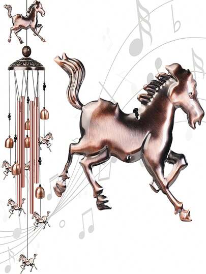 馬形戶外風鈴,裝飾性帶4個鋁管和s型鉤,用於庭院花園裝飾,獨特的媽媽禮物,金屬音樂風鈴,36英寸