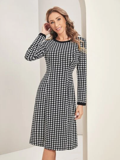EMERY ROSE 千鳥格印花A字連衣裙 - 黑與白 - 查看 2
