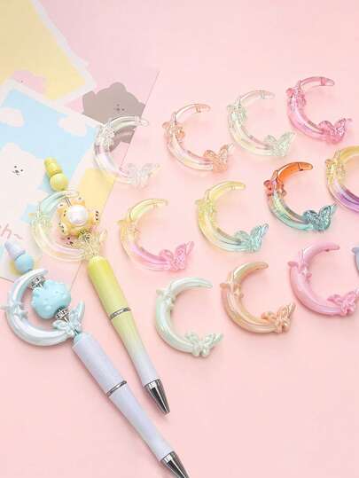 6 件随机丙烯酸 UV 涂层纯色星星、月亮、蝴蝶结珠 DIY 手机挂绳、钥匙扣、装饰配件 - 彩色 - 查看 11