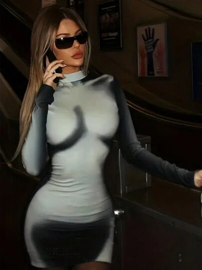 INAWLY 女性身體熱成像圖案洋裝 - 黑色 - 查看 1