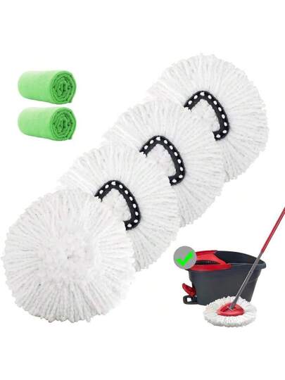 4 Pack Spin Mop Replacement Heads Microfiber Mop Refills Replace Heads Safe For All Hardsurfaced Floors Includes 2 Extra Microfiber Cleaning Cloths - 6PieceSet - 查看 1