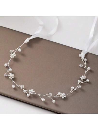 Using Pearls And Crystals With Silver Wire To Simulate The Shape Of Flower Branches, The Shape Is Exquisite And Elegant, Exuding A Romantic And Beautiful Temperament, Like A Flower Fairy. As A Gift For Female Relatives And Friends, It Is Suitable For Birthdays, Anniversaries Or Weddings And Other Occasions. It Means Beauty And Can Show Heart And Taste. - 銀色 - 查看 1