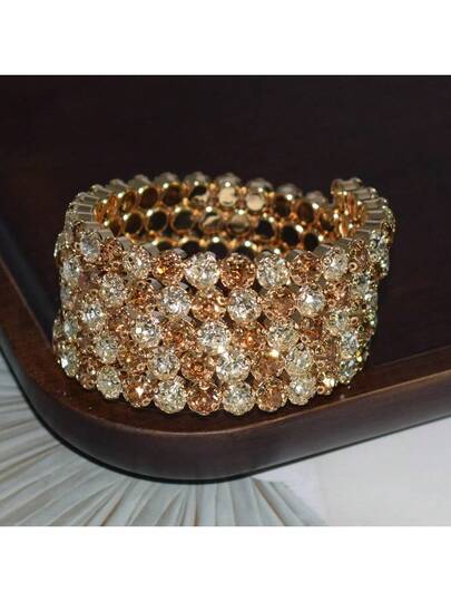 女士时尚多层水晶手镯,适合日常佩戴 - 5排 白+黃 - 查看 1