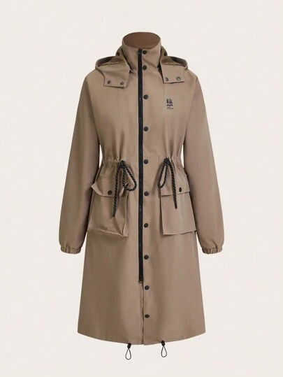 In My Nature 女士休闲前拉链长袖连帽衫,带口袋,日常穿着 - 卡其色 - 查看 9