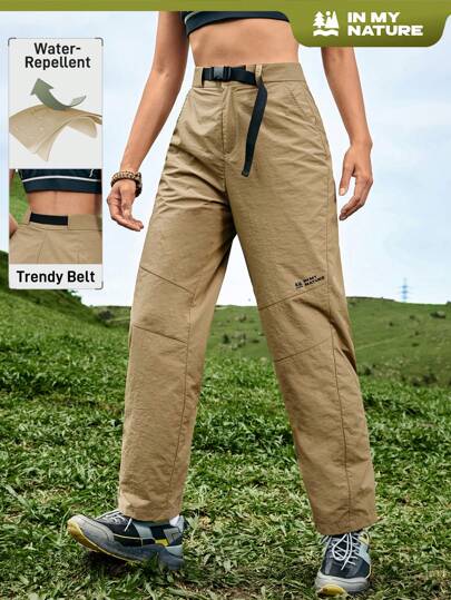 In My Nature 女性休閒戶外字母印花長褲 - 卡其色 - 查看 1