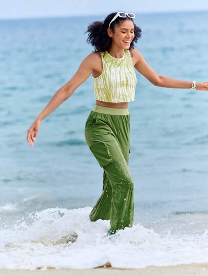 In My Nature 女式防水直筒户外裤,带拉链口袋 - 綠色 - 查看 1