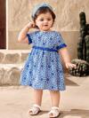 夏季女宝宝盖袖圆领甜美蝴蝶结装饰恐龙印花拼布休闲可爱户外连衣裙