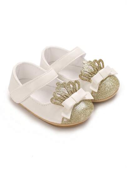 婴儿女童简约皇冠设计防滑学步鞋 - 白色 - 查看 1