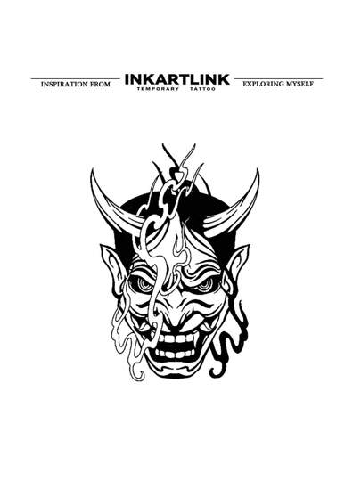 Inkartlink 守護般若臨時紋身貼,防水,持續 1-2 週,紋身,耐摩擦,逼真假紋身 - 黑色 - 查看 1