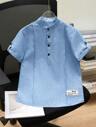 SHEIN 青少年男孩休闲/度假彩色块字母补丁春夏衬衫