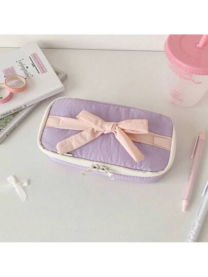 Ins Fabric Pencil Case Student Simple Bowknot Storage Bag Stationery Bag Organizer