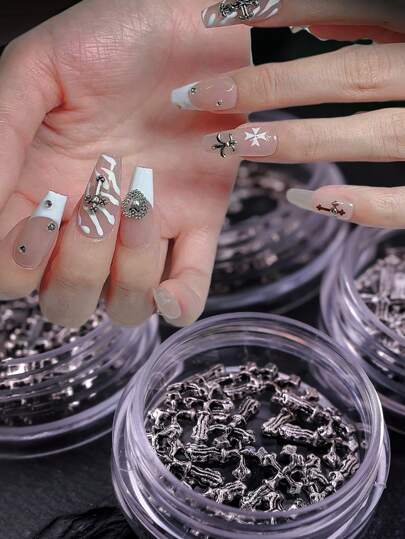 网红新款日系美甲饰品朋克风复古金属暗黑金属美甲饰品指甲装饰材料DIY合金配件 - 銀色 - 查看 5