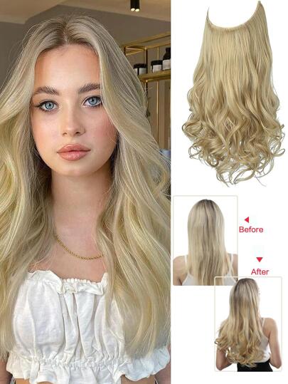 女士無痕線束頭帶假髮,高亮披散短髮,可調節12英寸深啡色/金色,無夾子式設計 - 金色 - 查看 6