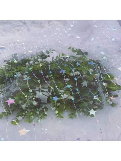 彩虹光熠熠星星花網紗面料,適用於婚紗和晚禮服裝飾,多彩亮片網料 - 白色 - 查看 9