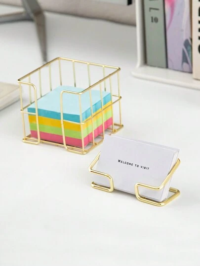 铁格桌面记事本收纳盒金属卡片收纳盒家庭办公桌收纳盒适合家庭书房办公室桌面收纳 - 鐵藝便條盒+幾何名片座 - 查看 1