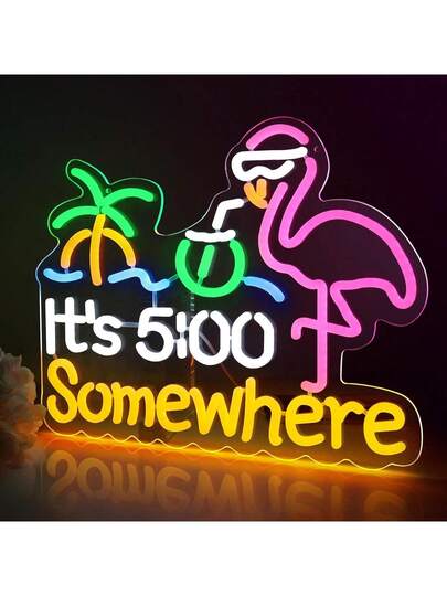 现在是下午 5 点,某个地方的霓虹灯可用于墙面装饰,可调光的霓虹灯,USB 供电的 LED 灯可照亮家庭酒吧的啤酒标志 - 字母 - 查看 1