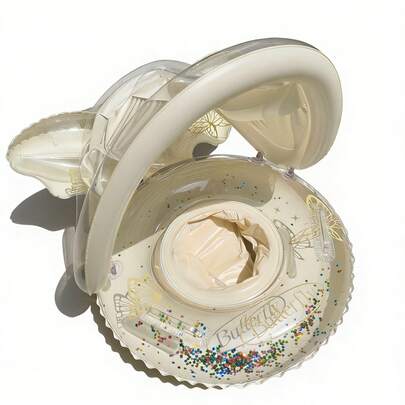 JIAJCHUF 充气弹簧游泳圈带遮阳篷,3 种款式闪光蓝色格子婴儿游泳圈座椅和臂圈,防翻婴儿游泳训练器贝壳设计,0 个月以上儿童游泳圈,夏季沙滩泳池水上玩具