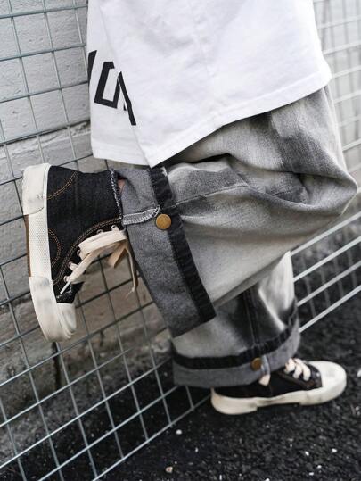 街头风滑板时尚个性化水洗牛仔高帮帆布运动鞋 - 黑色 - 查看 1