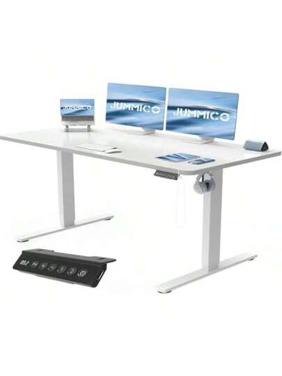 JUMMICO Scrivania Regolabile In Altezza Scrivania Regolabile Electrical Conart Panel Da Caricatore USB Scrivania In Piedi Con Funzioni Di Memoria Standing De140 X 60 Cm Bianco