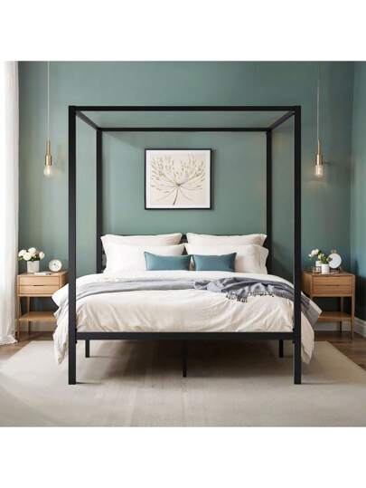 HOOMIC Full Size/Queen Size Canopy Bed Frame, Enhanced 4-Poster, 3-Metal Crossbar, No Box Spring Needed, Easy Assembly, Black/White * Bed Frame Queen Queen Bed Frame Bed Frame Full Full Size Bed Frame King Size Bed Frame Twin Bed Frame Room Decor Home Decor Christmas Decor Bedroom Decor Valentine Day Decor Storage Living Room Decor Furniture House Decor - 黑色 - 查看 8