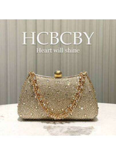 Luxury Gold Rhinestone-Encrusted Evening Clutch Bag, Sparkling Rhinestones And Exquisite Chain Decorative Evening Bag, Dinner, Prom, Holiday Must-Have! - 金色 - 查看 1