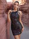 Joyfunear 單肩圍裹高衩亮片正式連衣裙