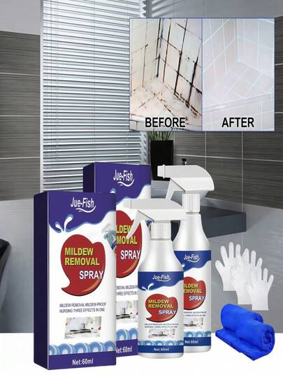Jue-Fish 多用途霉菌污渍清洁剂喷雾,有效去除浴室瓷砖、墙壁和天花板、厨房、浴室、家居、家居用品上的霉菌污渍 - 白色 - 查看 1
