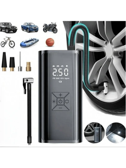 便携式无线汽车轮胎充气泵,智能数字显示空气压缩机,带压力表的多功能轮胎充气泵,可充电无绳汽车轮胎充气机 - 彩色 - 查看 1