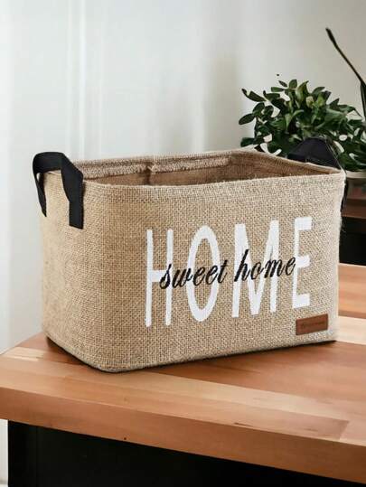 黄麻衣柜洗衣房收纳架玩具收纳架,可折叠储物篮 25x18x15