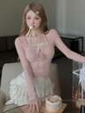 2 件套:甜美性感透明蕾丝挂脖系带上衣和无袖背心,女士夏季新品