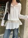 透明蕾丝 V 领长袖 T 恤,简约设计,女士合身短款 T 恤