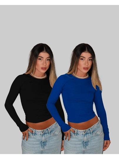 KIT 2 BASIC BLOUSE SECOND SKIN LONG SLEEVE COLD ROUND NECK CACHARREL ELEGANT CASUAL AITONA