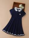 女孩條紋飾邊水手領百褶下擺連衣裙
