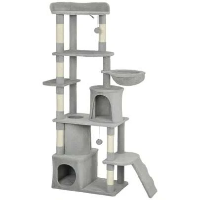 Katzenkratzbaum, 170, Tunnel, Höhlen, Große Basis, Sisalpfosten, Hellgrau On-Site - 1 - 查看 5